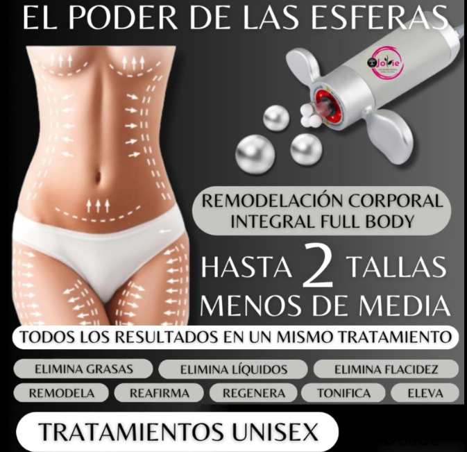 Jolie Action Corporal es un tratamiento revolucionario que combina tecnología avanzada con el poder de las esferas para lograr una remodelación corporal full body en una cada sesión. Gracias a su acción intensiva, permite reducir hasta dos tallas de media, proporcionando resultados visibles de inmediato y sin necesidad de procedimientos invasivos.