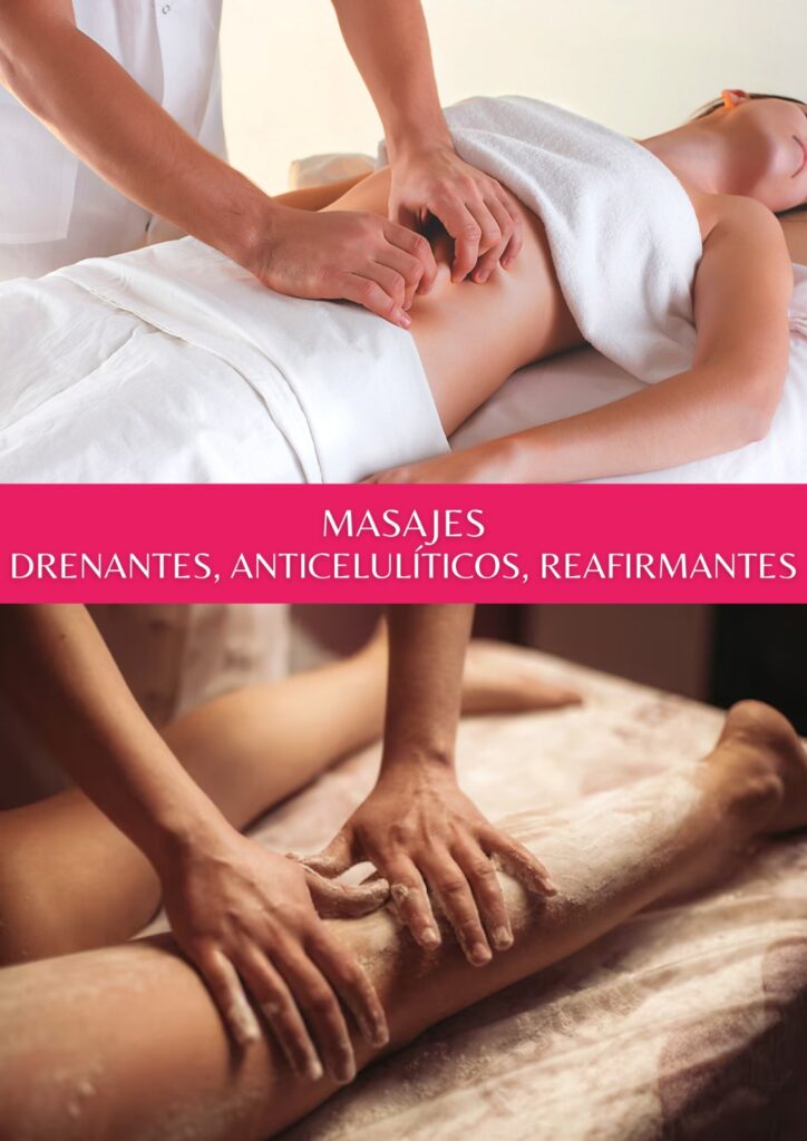 Los masajes drenantes anticelulíticos reafirmantes son unos tratamientos manuales avanzados realizados en piernas, abdomen o ambos, diseñados para estimular la circulación, eliminar líquidos retenidos y reducir la celulitis de forma efectiva. A través de movimientos específicos y técnicas de drenaje linfático, estos distintos tipos de masajes ayudan a disolver los depósitos de grasa, mejorar la textura de la piel y potenciar la eliminación de toxinas. Además, sus efectos reafirmantes contribuyen a tonificar los tejidos y mejorar la elasticidad cutánea, dejando la piel más lisa, firme y uniforme. Ideal para quienes buscan una silueta más estilizada y una piel visiblemente más tersa.